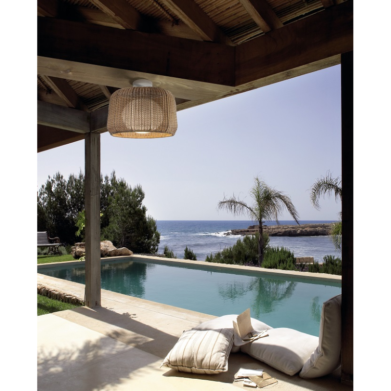 Fora is a product designed to illuminate warm outdoor spaces. Light source is protected by an elliptical medium intensity and U.V. resistant polythene globe, which grants a water tight electrical fixture. The shade is made of synthetic wicker; making it highly resistant to weathering while casting a pleasant diffuse light.