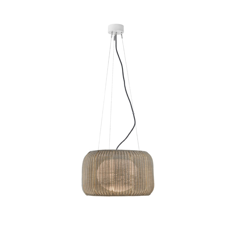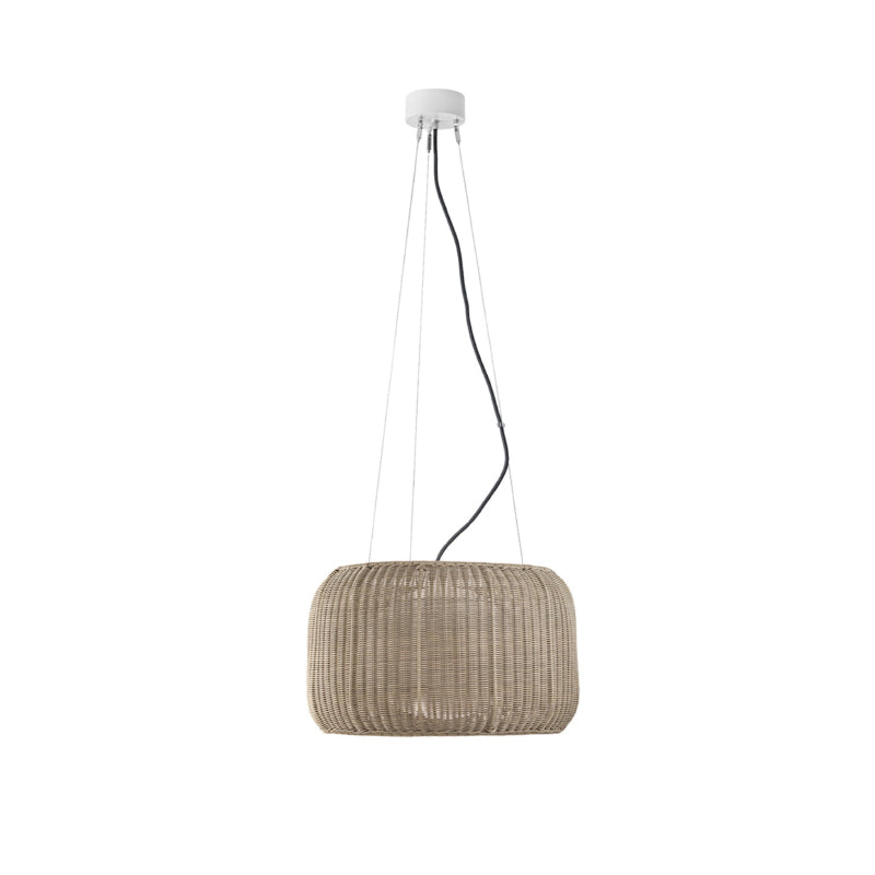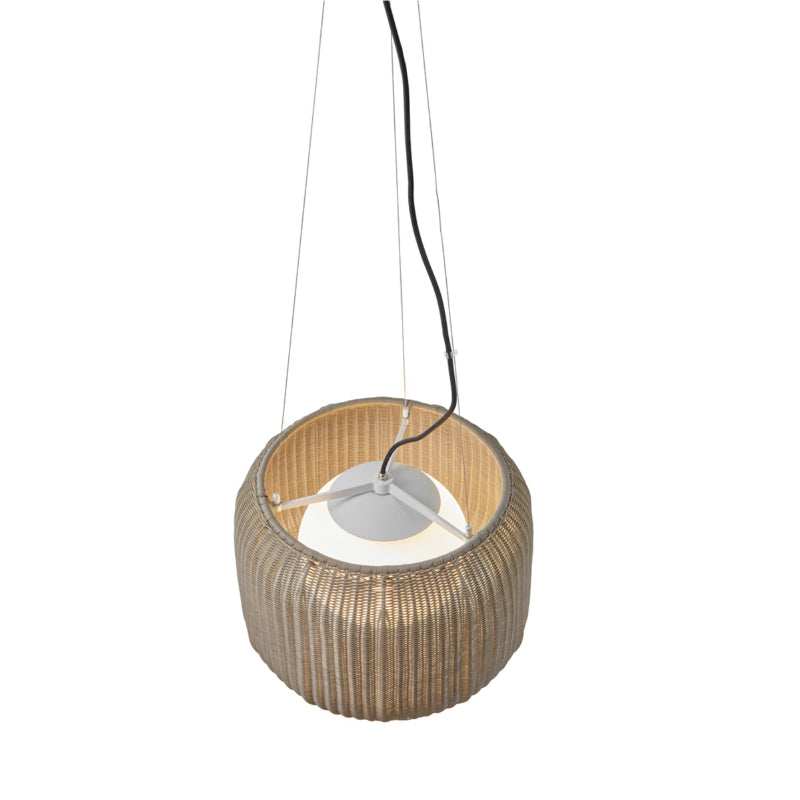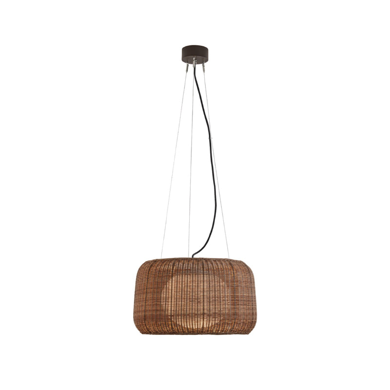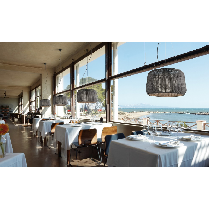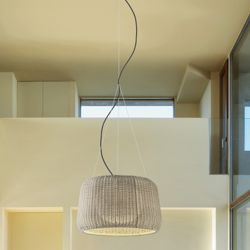 Fora is a product designed to illuminate warm outdoor spaces. Light source is protected by an elliptical medium intensity and U.V. resistant polythene globe, which grants a water tight electrical fixture. The shade is made of synthetic wicker; making it highly resistant to weathering while casting a pleasant diffuse light.