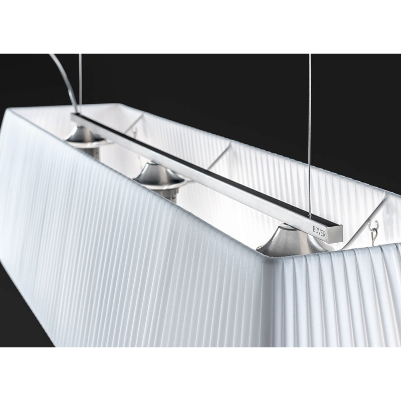 Mei is a pendant family composed of different shapes and lines but with a common denominator: the ribbon. The ribbon shades are entirely made in BOVER, starting with the frames welding to the ribbon process itself.