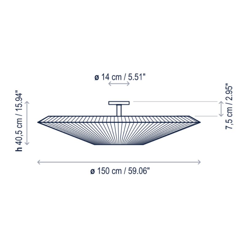 SIAM breaths a certain oriental air derived from the inverted shade. It takes its essence from MEI and offers a soft cascading light. These luminaires can be grouped in varying compositions, superposing shades partially one over the other, and creating a perfect mural for any space.