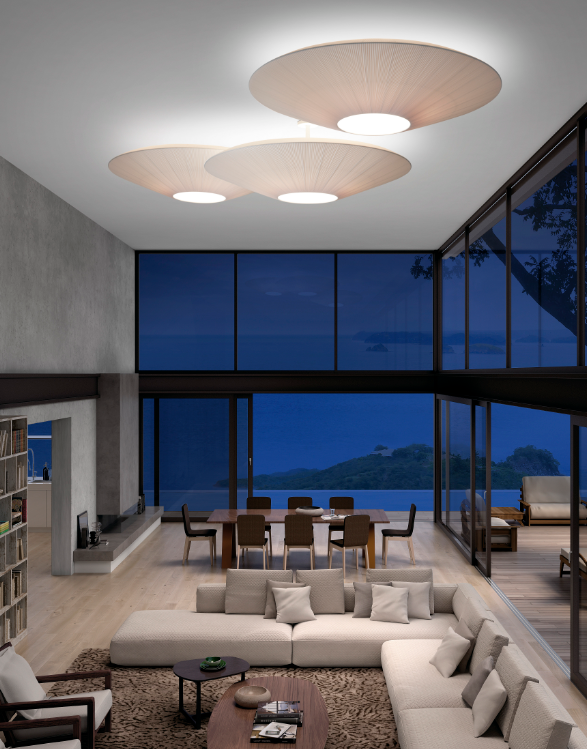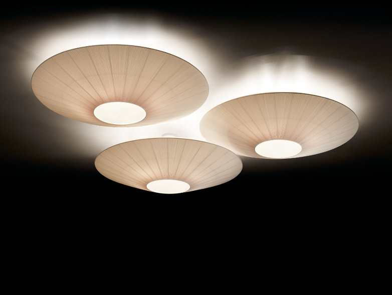 SIAM breaths a certain oriental air derived from the inverted shade. It takes its essence from MEI and offers a soft cascading light. These luminaires can be grouped in varying compositions, superposing shades partially one over the other, and creating a perfect mural for any space.