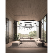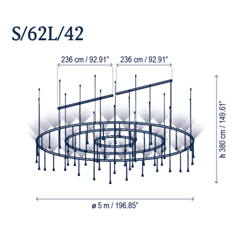 Skybell is an extensive system of light structures, designed to adapt to any type of application. Their main characteristic is the image they give off, they are subtle and cheerful. They breathe a point of fantasy and freedom in their applications because they can be combined in variations, mixing their 4 sizes, until they achieve a more personal and dynamic lamp concept or they can keep all the ‘bells’ in the same length, achieving a more traditional image.