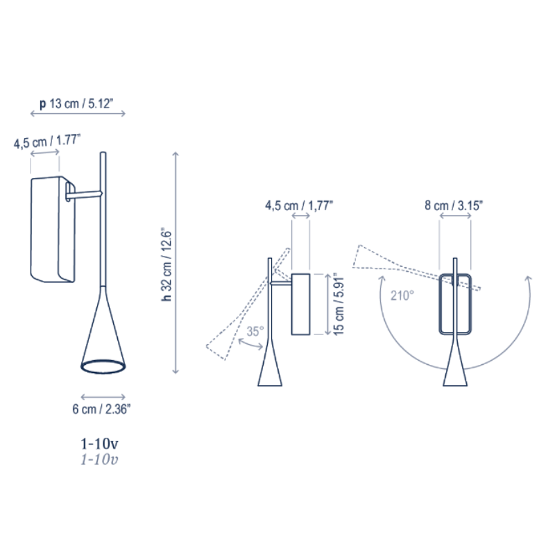 Bover Skybell Plus A/01 1-lt 13" Tall LED Wall Sconce, 0-10V