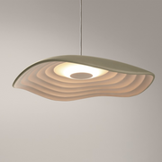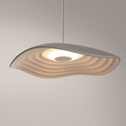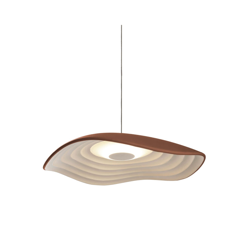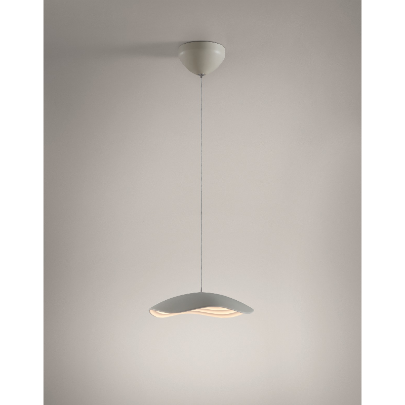 The concept of this lamp is based on a smooth head which draws a wavy shape on its perimeter, the clear contrast with the lamp inner part, that reminds us of the gentle and small oscillations that marine currents form on the Mediterranean coast. Valentia is a light lamp, which emits direct light down through a small polycarbonate diffuser.