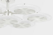 Simply put, Topaz is simply stunning. Rippled disks of polished brass or nickel rest on larger disks of piastra ice glass. Light fills the piastra glass shade and cascades down to reflect off the etched metalwork; the effect is absolutely dazzling.