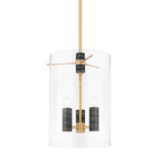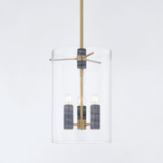 Adonis takes a familiar lantern silhouette and combines it with a unique and upscale mix of materials to make it stand out and feel special. A clear glass cylindrical shade houses a set of honed Nero Madera Marble candlesticks with Vintage Brass accents for a refreshing yet refined look that complements any interior.