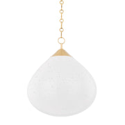 Semilla takes the basic beauty of a teardrop pendant and elevates it with opal seeded glass and a Vintage Brass cap and chainwork. The seeded glass shade is simply stunning when lit.