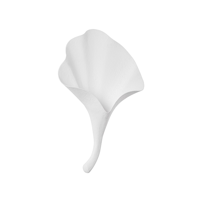 Old Hollywood glamor meets modern simplicity in this sculptural sconce. The leaf-shaped design, delicately fluted with a curved stem, exhibits a refined beauty. Available in a Vintage Gold Leaf or Gesso White finish, it looks beautiful mounted independently or paired with another.