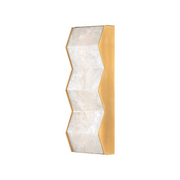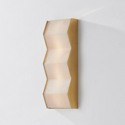 A distinctive geometric wall sculpture, Tanzanite features a folded motif of translucent alabaster. The Vintage Brass frame brings out the warm tonal variations found in the alabaster while adding a metallic contrast to the natural stone. Whether the sconce is illuminated or not, the juxtaposition of materiality makes a poetic statement. *Due to the one-of-a-kind nature of the medium, exact colors and patterns may vary slightly from the image shown.