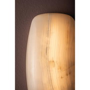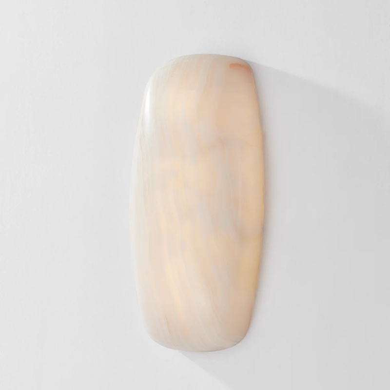 Sculpted from a single piece of Ice Onyx, Azzurra emits a highly atmospheric, lit-from-within glow. The mesmerizing color striations vary slightly piece by piece, making this oblong sconce unique to your home or hallway. A concealed LED emanates a warm, welcoming glow when lit. *Due to the one-of-a-kind nature of the medium, exact colors and patterns may vary slightly from the image shown.