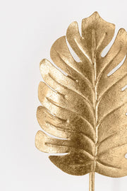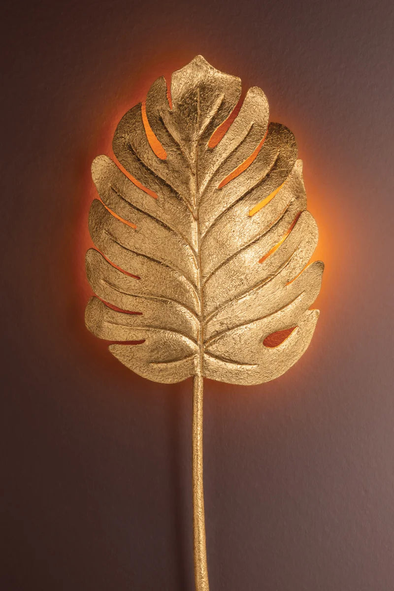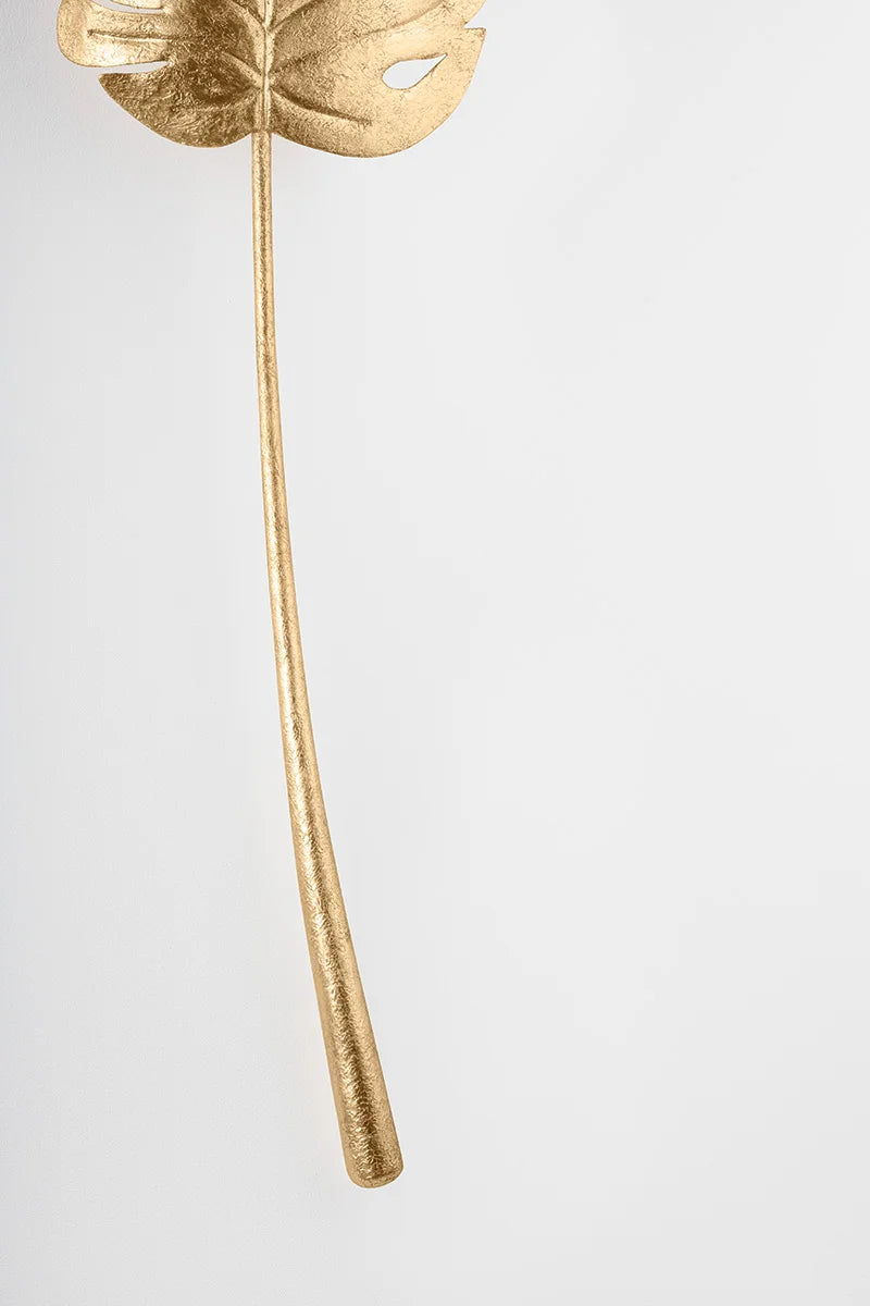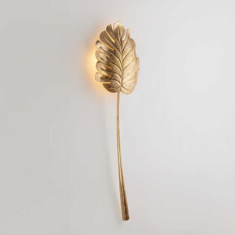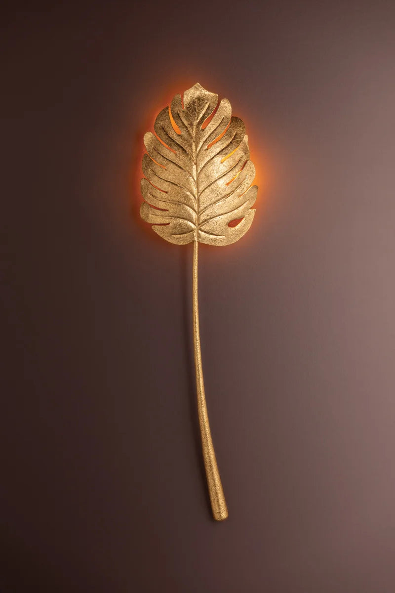 Taking the shape of a tropical leaf, Seychelles hangs as a work of art even without illumination. This ambient wall light features a long, slender stem and intricate veining.