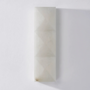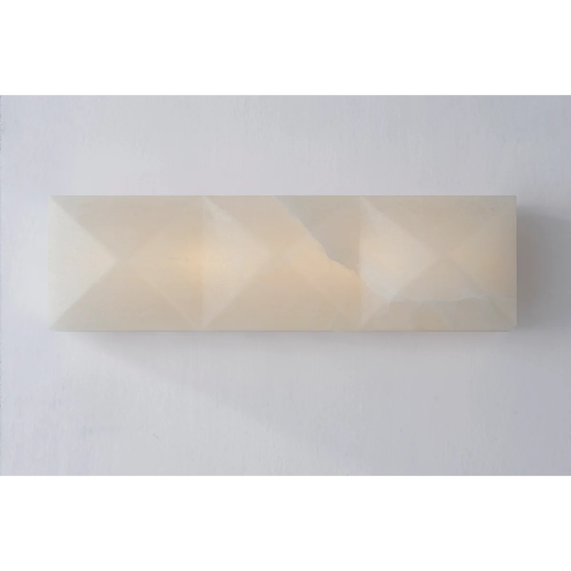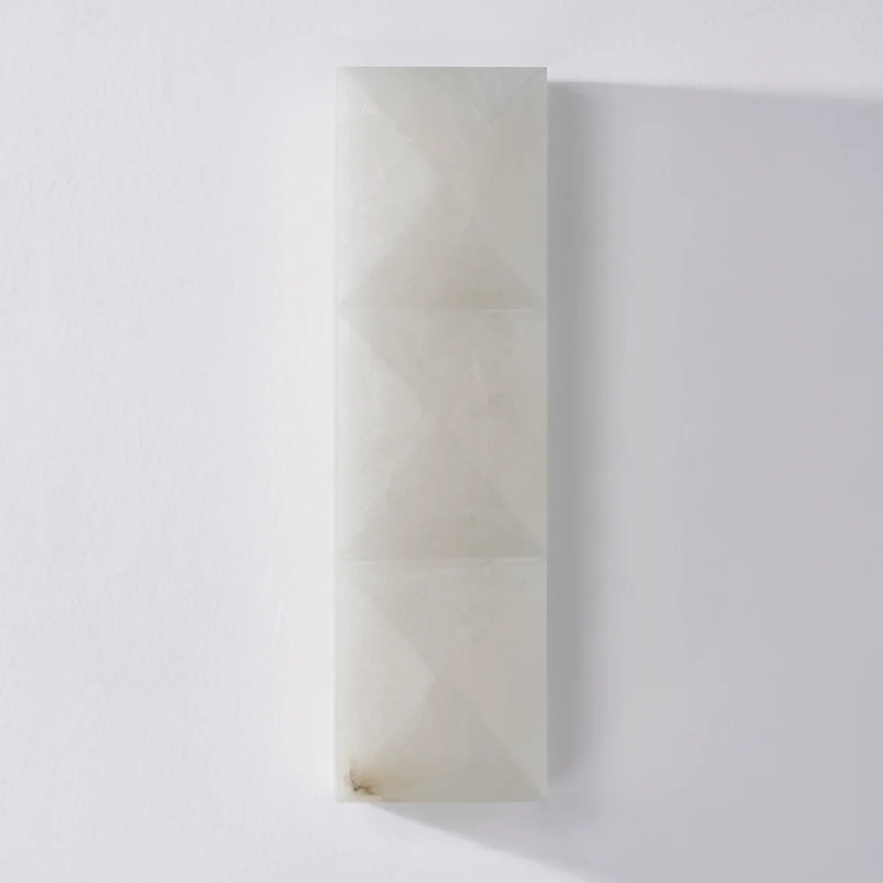 Letting the beauty of the alabaster shine, this distinctive sconce emits a warm, milky glow. The natural stone panels have been thoughtfully cut to accommodate smaller spaces, making them an ideal choice for hallways and bathrooms. Concealed within the fixture is an energy-efficient LED, ensuring hours of luminous and efficient lighting. *Due to the one-of-a-kind nature of the medium, exact colors and patterns may vary slightly from the image shown.