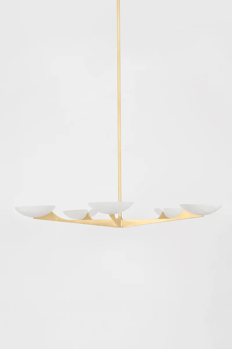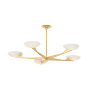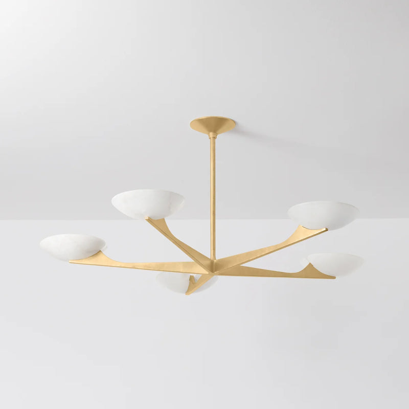 Embracing modernism with elevated materials, Malachite is a versatile chandelier for living and dining spaces. Arrayed evenly from a center point, each arm on the fixture culminates in a 10” bowl shade filled with light.