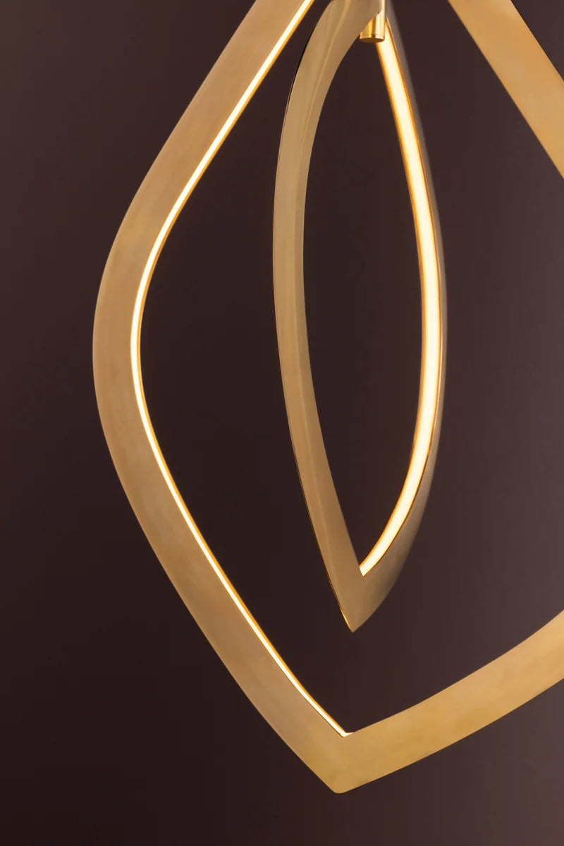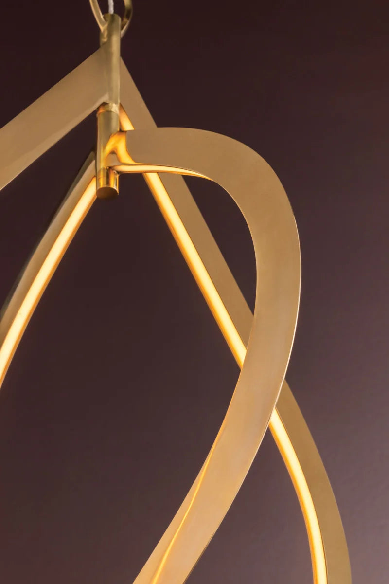 The natural world meets the precision of modern technology in the Arles chandelier. The silhouette is organic and fluid with curving metalwork reminiscent of jewelry. Within the two sculptural rings, thin LED bands emit a gentle glow.