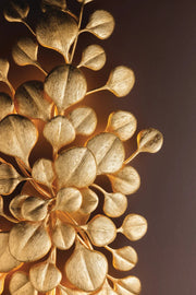 An overscale, exuberant expression of botanical beauty, Menorca animates a space. The design takes inspiration from eucalyptus leaves, which are illuminated from behind to create a dramatic, sculptural moment. The slight abstraction to the forms feels futuristic, while the Vintage Gold Leaf finish adds a luxurious note.