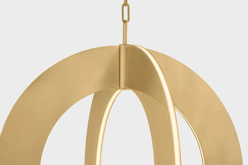A large-scale statement pendant, Samos is designed to elevate a space with sculptural, geometric elegance. Featuring an innovative use of LED light, this pendant’s visual impact is enhanced by its functionality. The rounded, ring-like shade is finished in Vintage Brass, creating a dynamic surface that draws the eye while reflecting light.