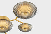 Drawing inspiration from natural branching forms, Birmingham makes a boldly modern wall art statement. The design features starburst cast topaz Piastre glass shades and clear etched glass shades, facilitating an interplay of light, texture, and shape. Its unique scale and silhouette create a sculptural, immersive experience that draws the eye.