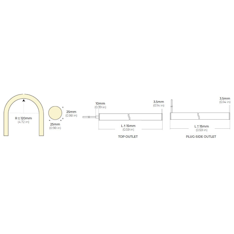 Core SLQ-25 SLINQ RGB 4.4W/ft IP65 24V Flexible 360º Round Neon LED Strip, Suspended Pendant
