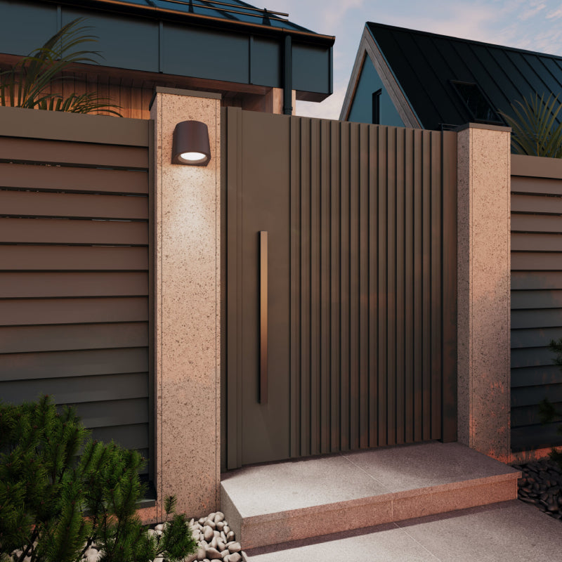These 5" dark-sky friendly wall fixtures offer focused, energy-efficient illumination while minimizing light pollution, making them ideal for environmentally conscious outdoor spaces. The photocell feature automatically adjusts to changing light conditions, providing energy-efficient illumination without requiring manual control.
