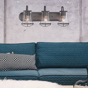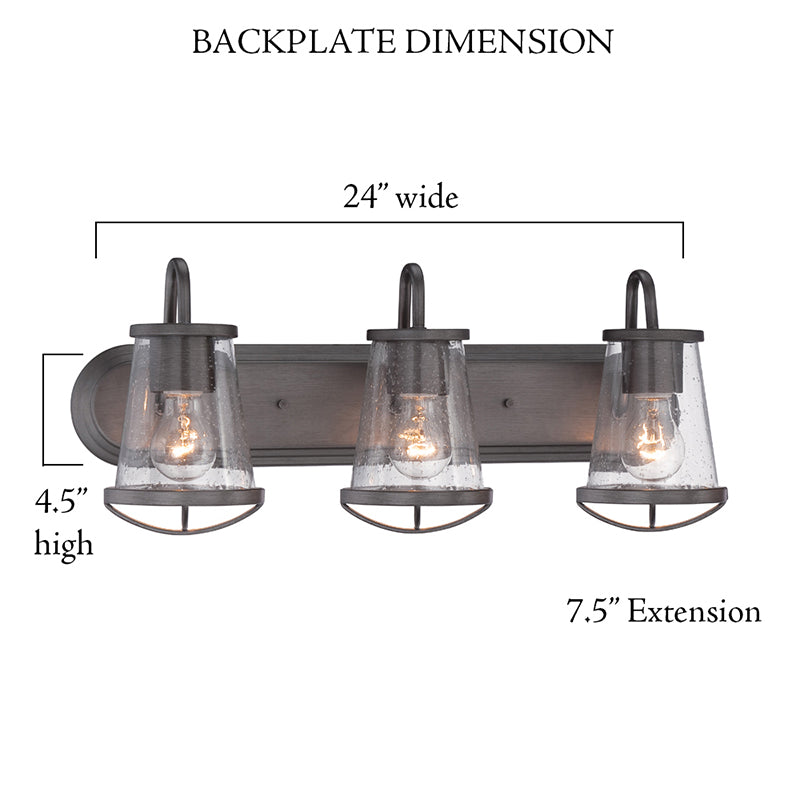 The Weathered Iron finish and Clear Seedy glass offer a modern Industrial approach to the interior from the Darby collection.