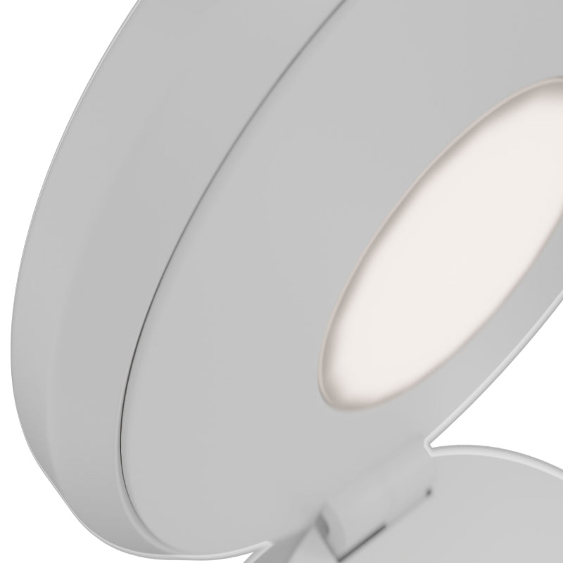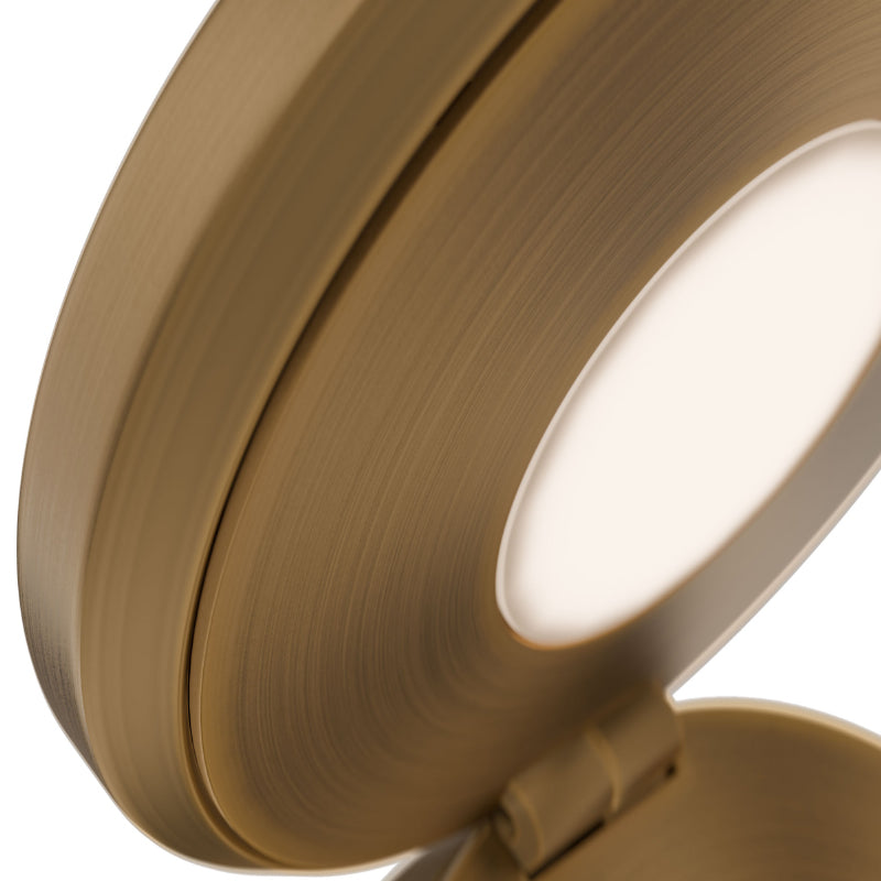 Compact. This rotatable disc has a dual design. When closed, a front light