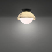 Mysterious as the moon. Opal glass casts a diaphanous glow through creamy decorative alabaster.