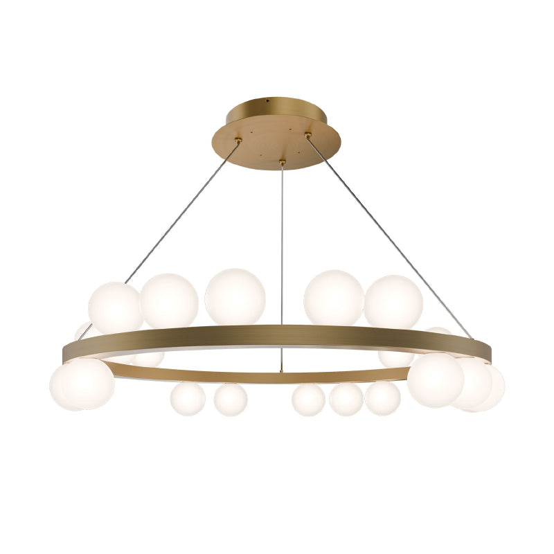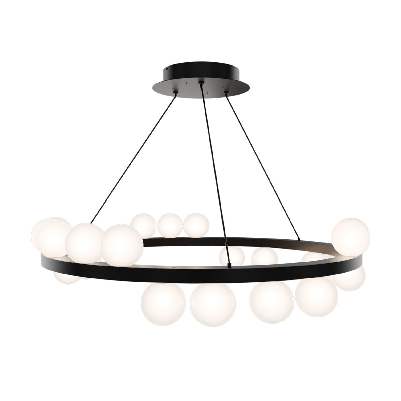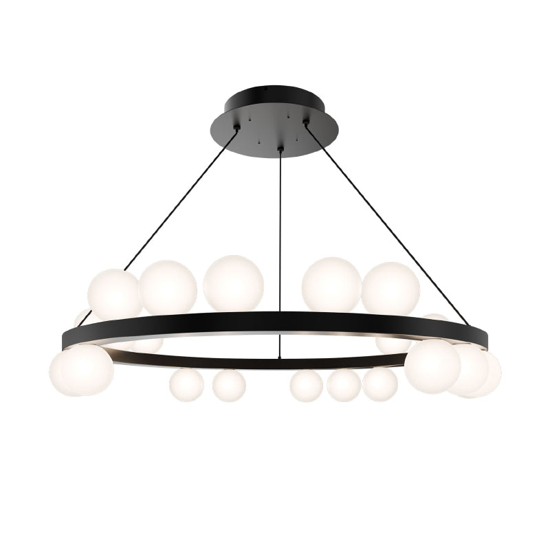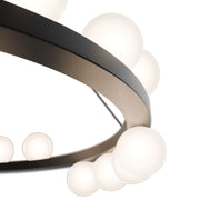 Merry-go-round. Opaque globes float up and down around a simple band,