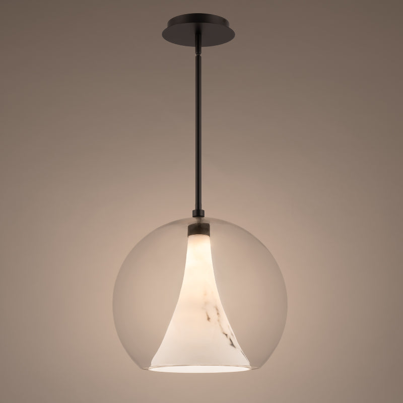 An unexpected first impression. Glowing alabaster captured within a clear crystal globe.