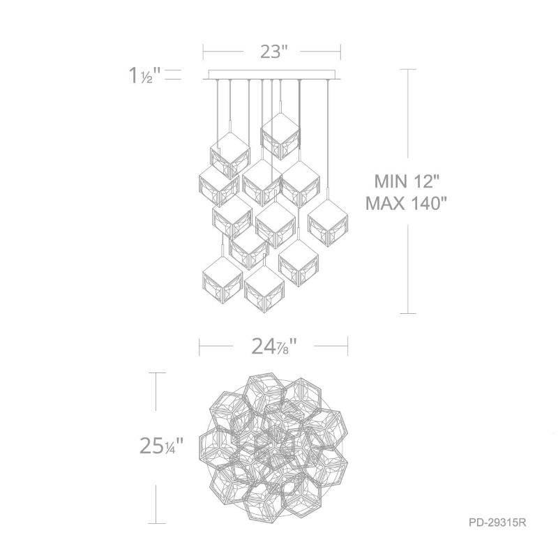 dweLED PD-29315R Ice Cube Round 15-lt 25" LED Pendant