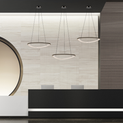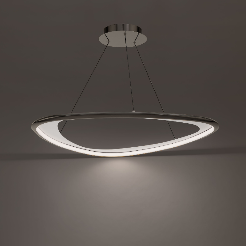 Organic in nature, a white diffuser undulates within a band of black. Uniquely flowing, this pendant supplies contemporary interiors with warm LED light.