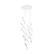 Showers of light. Delicate bands of soft LED illumination weave playfully in a downward flowing motion from its geometric canopy above.