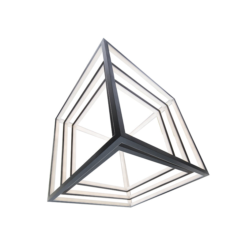 Reminiscent of the brilliant modern artwork of Eva Rothschild, this unique pendant features three illuminating cubes that move independently. The black finish provides striking contrast with the luminous lines of light. A recognizable bold design.