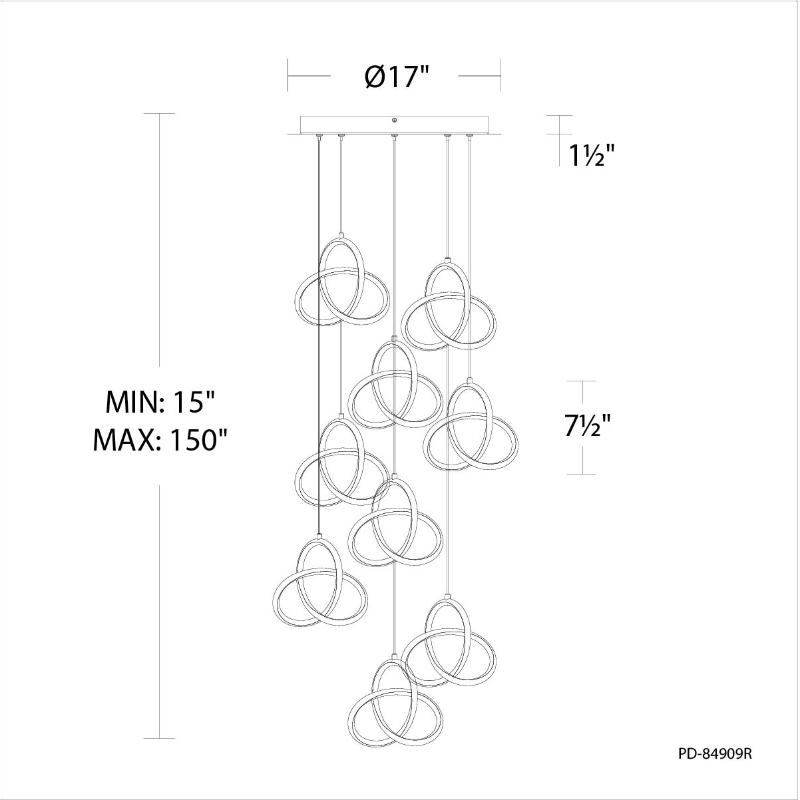 dweLED PD-84909R Vornado Round 9-lt 17" LED Pendant