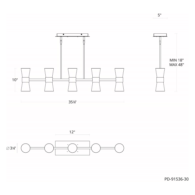dweLED PD-91536 Hourglass 5-lt 36" LED Pendant