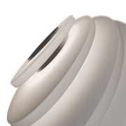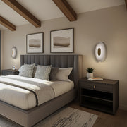 A smooth, layered design of concentric rings frames a crisp central circle. Its low-profile construction minimizes bright horizontal glare while creating a gentle wall wash around the inner plate.