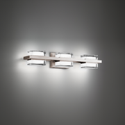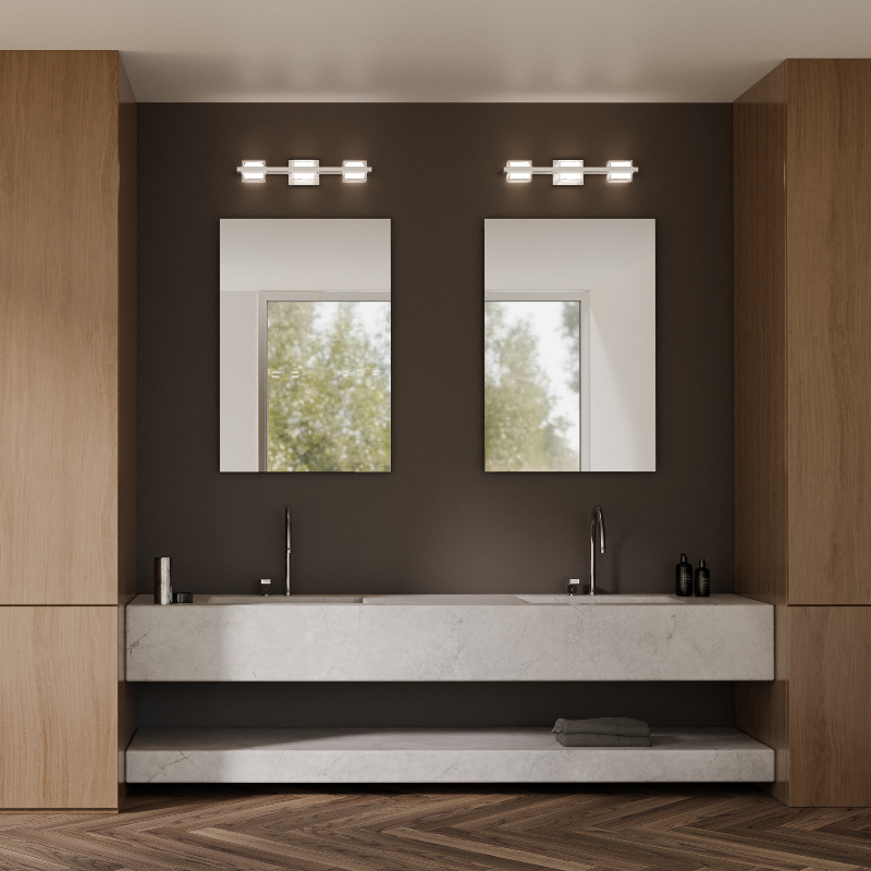 Smoothly opulent. Thick-walled shades offer beautifully diffuse illumination. The frame’s elegant lines draw attention to its glass blocks, fashioning a statement of luxury for your bath.
