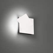 Equilateral geometry. Two squares form a boxy frame. The smallest floats over integrated LEDs, allowing soft illumination to radiate around its edges.