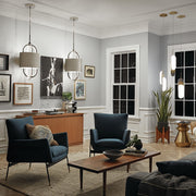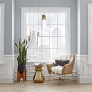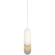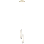 Shima is a study of contrasts: contrasting finishes and designs. The soft contemporary pendant features a body that appears to be shifted from the center, for a subtle nod to art deco design. The soft white diffuser glows softly from within using an integrated LED light.