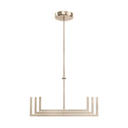 With its soft edges and rounded rectangular shapes, the Koloa 41 Inch LED Linear Chandelier adds a calming element to your modern decor. Even the installation plate has rounded corners, ensuing a soothing symmetry throughout. Adjust its height and dim its lights. The Koloa linear chandelier in Champagne Gold is unparalleled style.