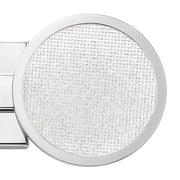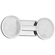 The two-light LED vanity light and with Polished Chrome finish from the DelaineTM collection makes the perfect modern glam piece with its clusters of clear glass with crystal inlay. The perfect piece to add sparkle to a bathroom or a powder room.