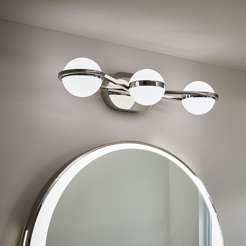 The Brettin Collection brings a sense of dimension and movement to a bathroom space. Inspired by a playful slingshot toy, each fixture features globe lights in a fun Mid-century Modern arrangement. It’s an artful addition to today’s contemporary powder rooms.