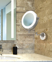 This sleek, contemporary makeup mirror will Charm you with a pronounced ring of light, dual 1X/5X magnification, and an articulated arm for near and far viewing.