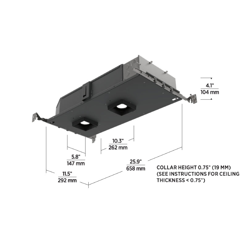 The 3" LED Dual Adjustable downlight provides high performance and beautiful architectural appearance when design requirements for task or accent lighting require two closely spaced downlights with ndependent aiming capability.