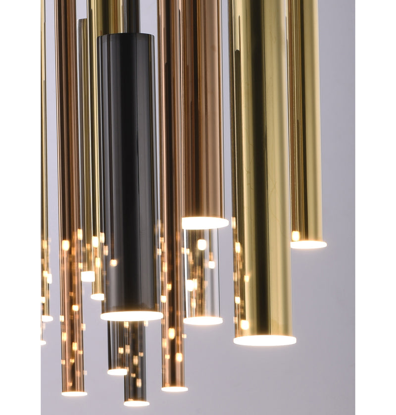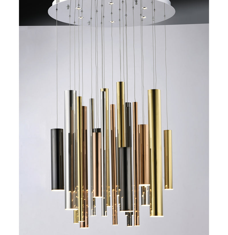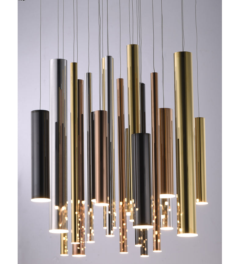 Each tube encase a replaceable integrated LED module while many of the ceiling pans house additional LED spots to highlight the beautiful high gloss finishes as well as additional down light.