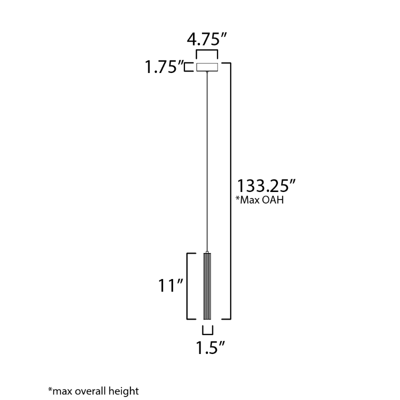 • Max Overall Height: 133.25"