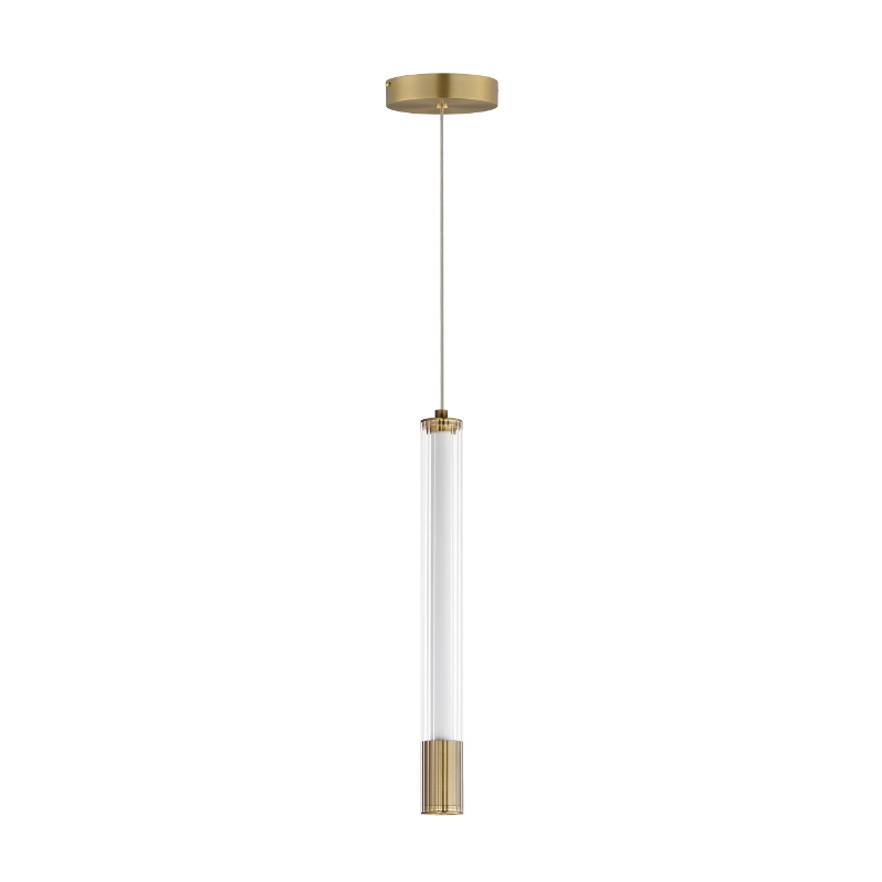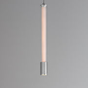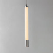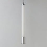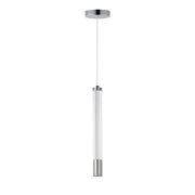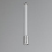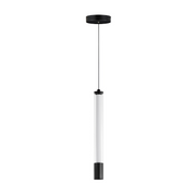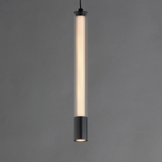 A central, cylinder diffuser of opal white acrylic diffuses LED lighting within a cavity of thin ribbed glass of various lengths. Both imaginative and functional, the bright pendants encase an additional down light recessed within a Polished Chrome, Naturally Aged Brass or Matte Black housing casting light downward.