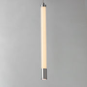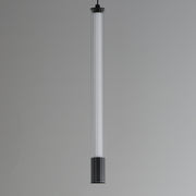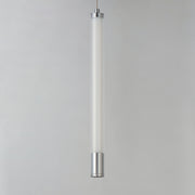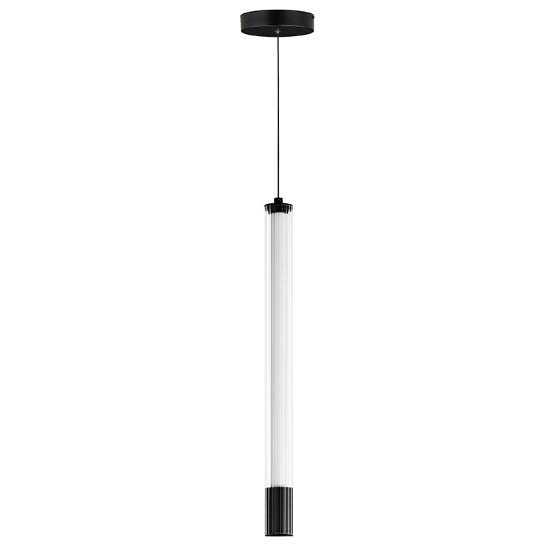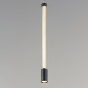 A central, cylinder diffuser of opal white acrylic diffuses LED lighting within a cavity of thin ribbed glass of various lengths.