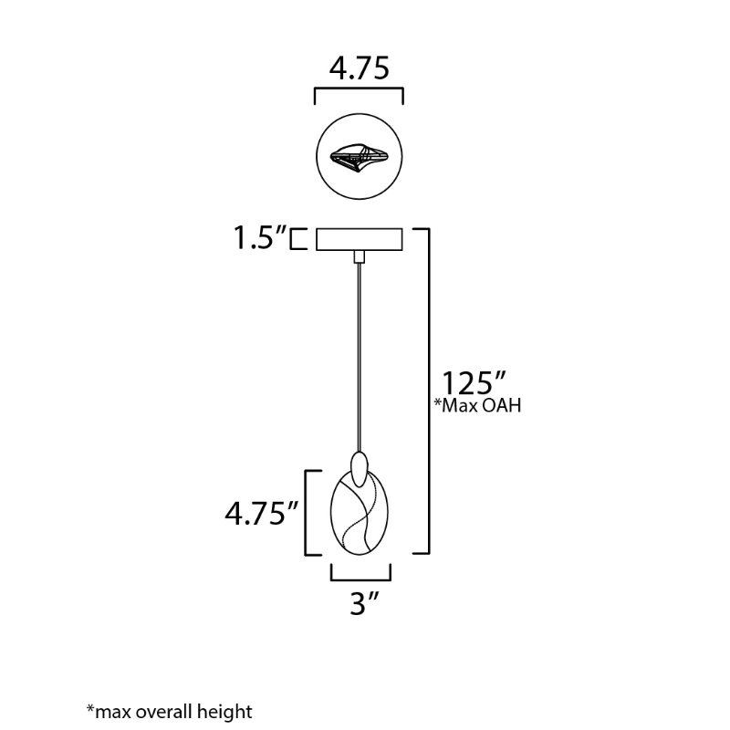- Canopy: 4.75" L x 4.75" W x 1.5" H