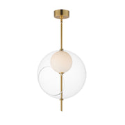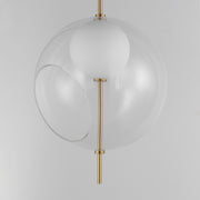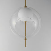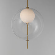 Class and character describe these unique LED light pendants. Start by taking a spike in Natural Aged Bass and stick it through multiple layers of glass globe shades. The outer layer is an oversized Clear glass with a slanted opening exposing a smaller White glass globe inside illuminated by the LED concealed within it. It's serving a martini and bright ideas.