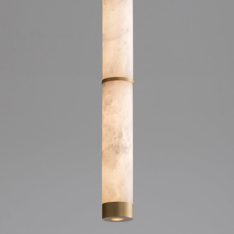 Featuring carved Spanish Alabaster shades in sleek cylindrical forms, the Aragon collection conceals high-powered LED light sources within, providing both beauty and functionality.